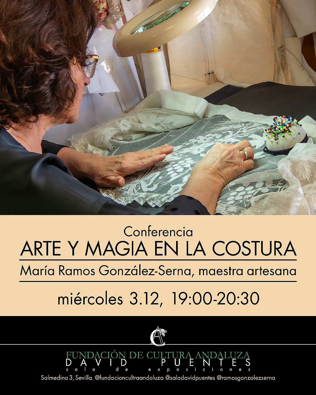 El próximo miércoles 3 de diciembre, de 19:00 a 20:30 horas, la Sala David Puentes (C/ Salmedina, 3) de la Fundación de Cultura Andaluza recibe a María Ramos González-Serna, quien pronunciará la conferencia «Arte y magia en la costura».