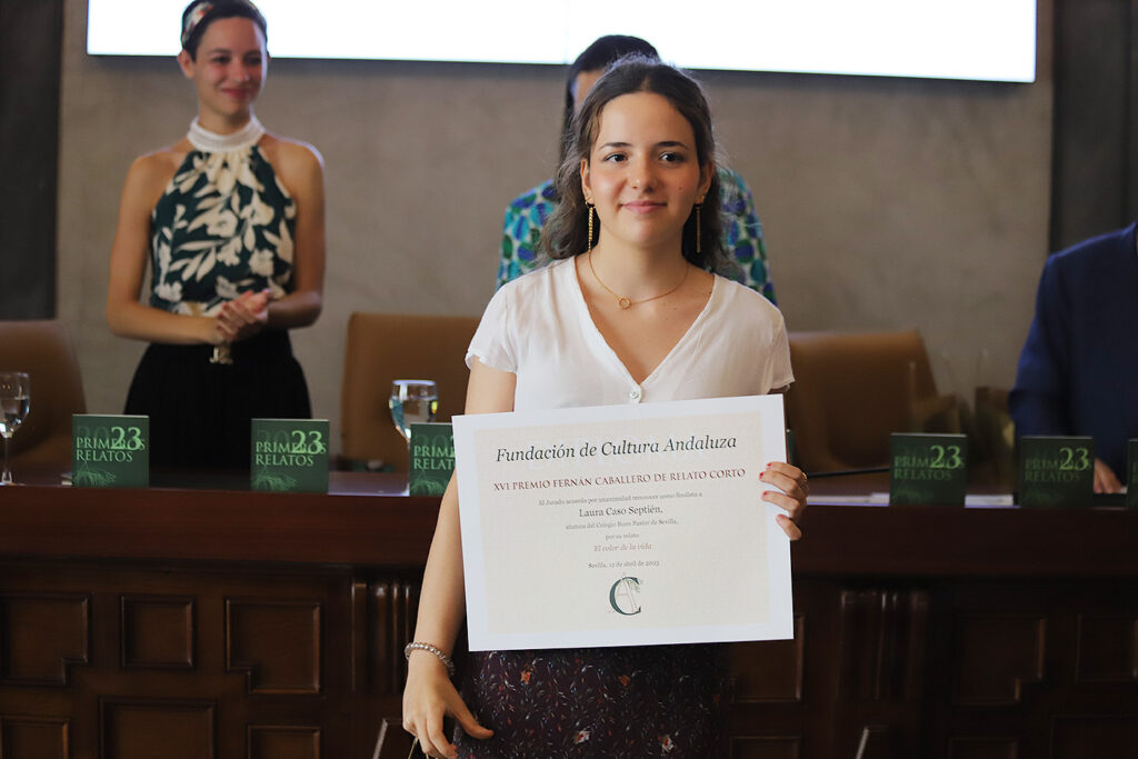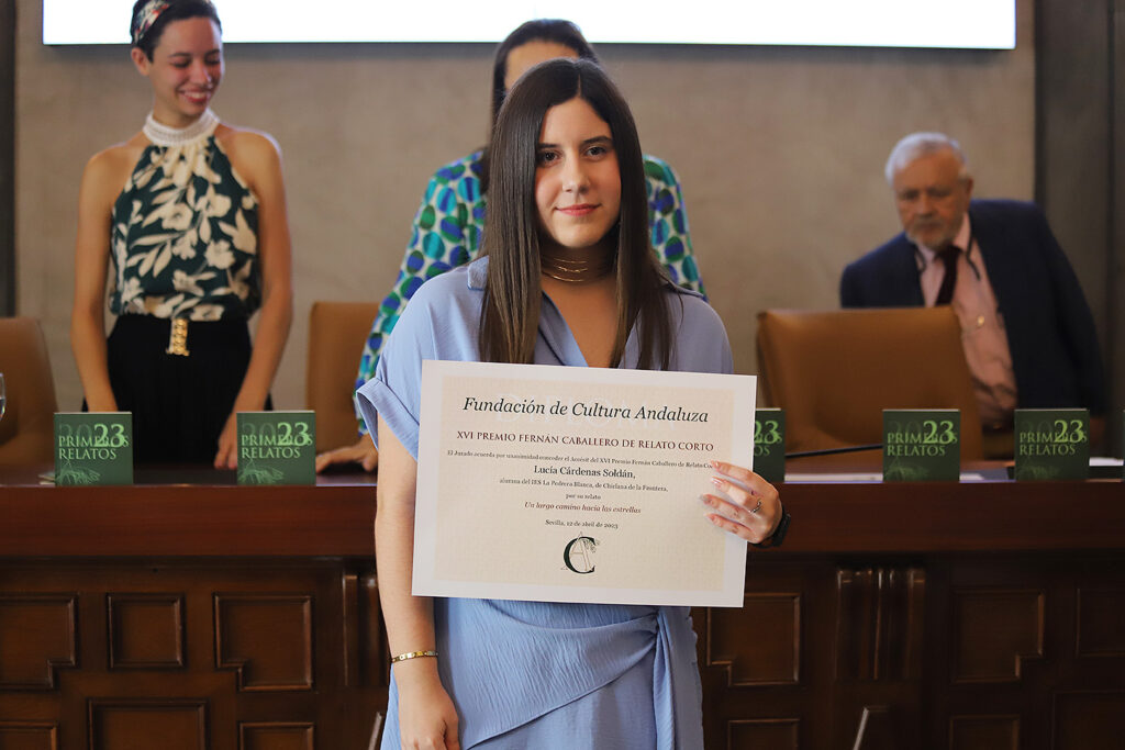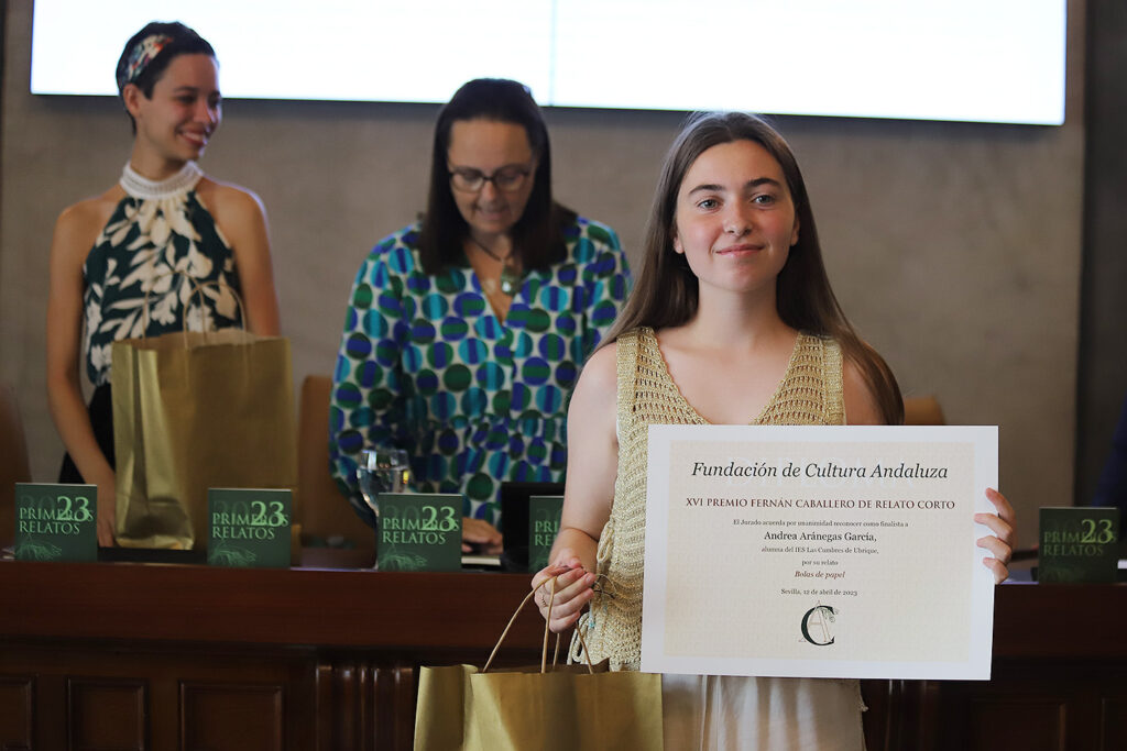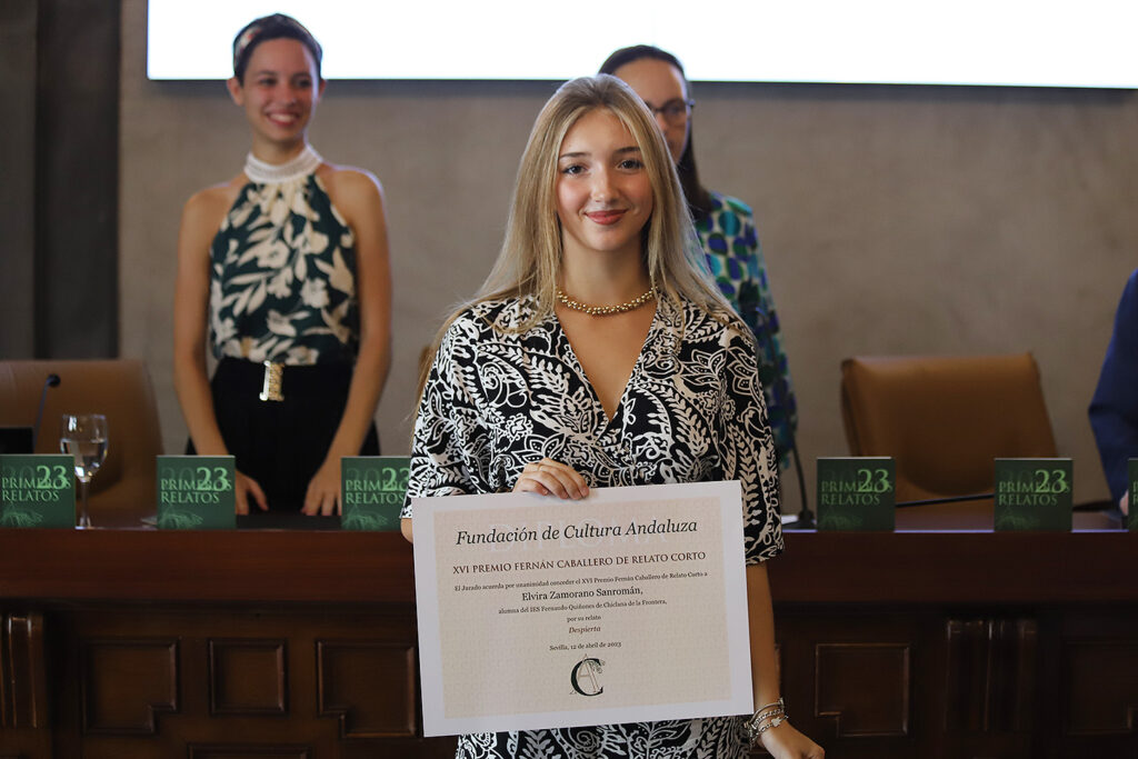 La Casa de la Provincia de Sevilla acogió el pasado viernes 30 de junio la entrega del XVI Premio Fernán Caballero de Relato Corto, convocado por la Fundación de Cultura Andaluza. Este premio, que surgió con el objetivo de fomentar la escritura y la actividad literaria entre los jóvenes, está dirigido a alumnos de 4º de ESO y Bachillerato en el territorio andaluz. En este 2023, Elvira Zamorano Sanromán, alumna del IES Fernando Quiñones de Chiclana de la Frontera, ha resultado ganadora con su obra Despierta.