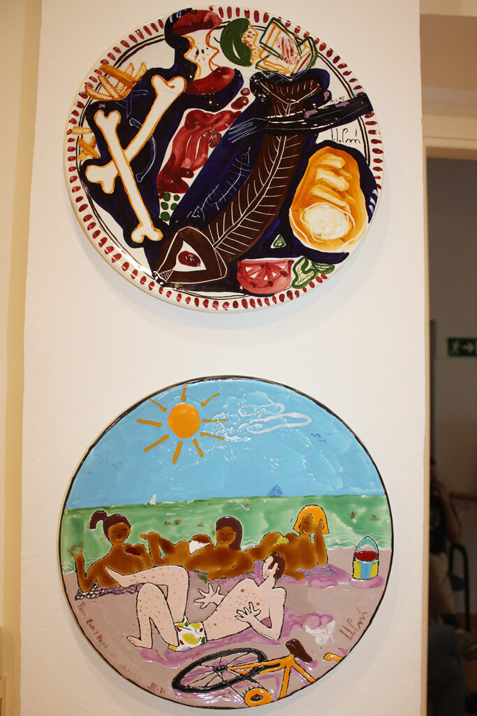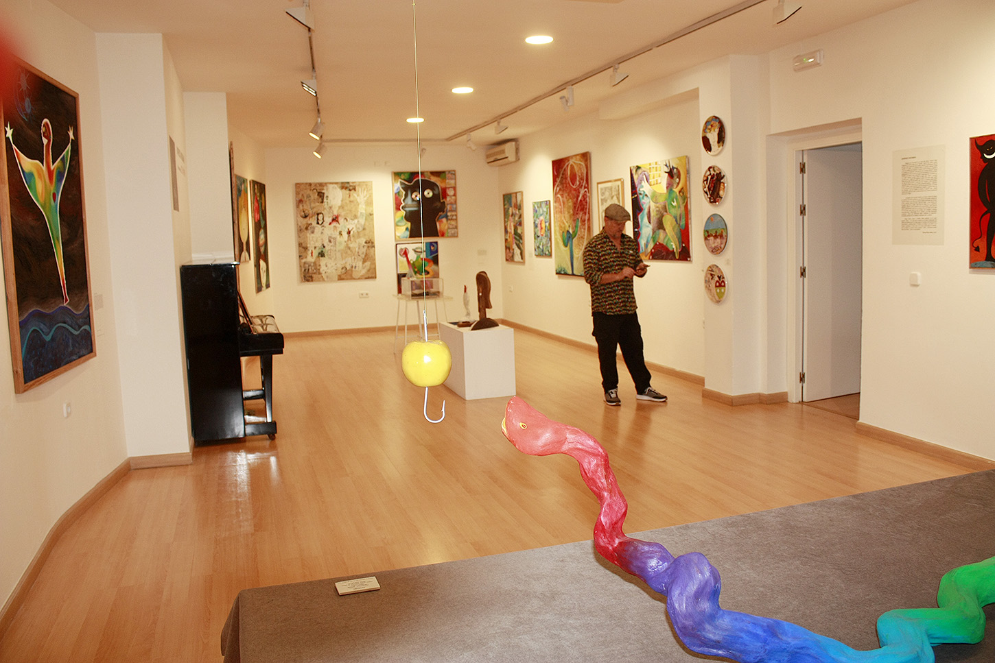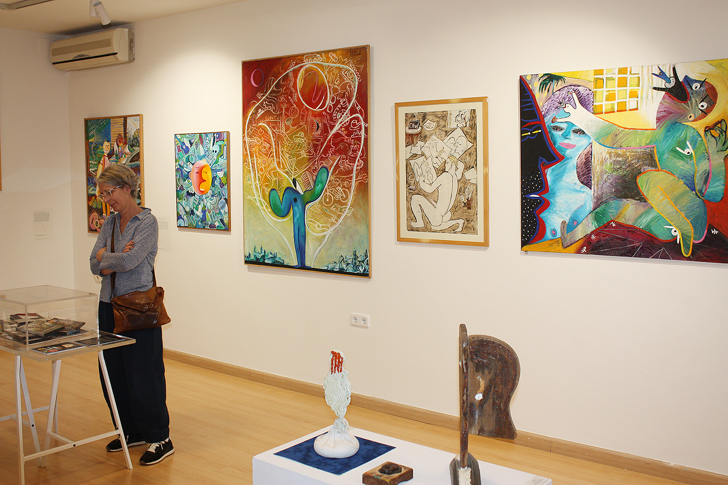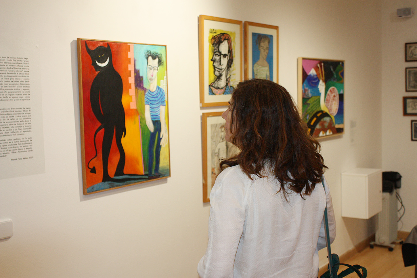 Asimismo, «completan este recorrido temático una breve muestra de piezas en cerámica, dos obras escultóricas, una colección de apuntes y dibujos de pequeño formato y una vitrina con distintos objetos personales que incluyen cómics, películas, discos de vinilo, cintas de casete y otros enseres que formaban parte de su taller. Todo ello fiel reflejo de sus poliédricos referentes artísticos y de la evolución de su personalísimo estilo desde el intenso expresionismo inicial de sus primeras obras de finales de los años 80 del pasado siglo hasta las más recientes, más complejas y maduras compositivamente, desbordantes de su peculiar y ya bien reconocible cromatismo. Obras que difícilmente dejan indiferente al espectador, haciéndolo partícipe de su contagioso entusiasmo vital y creativo».