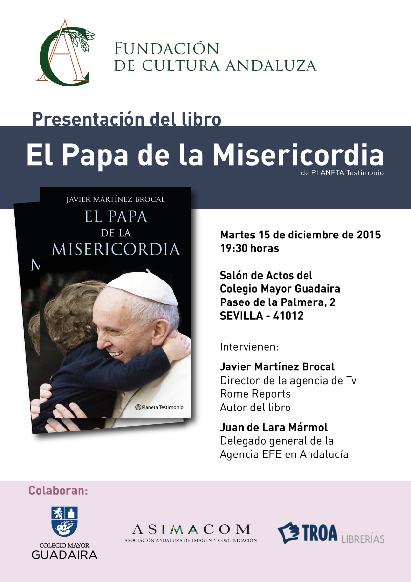 LA FUNDACIÓN DE CULTURA ANDALUZA tiene el gusto de invitarle a la presentación del libro de PLANETA Testimonio El Papa de la Misericordia