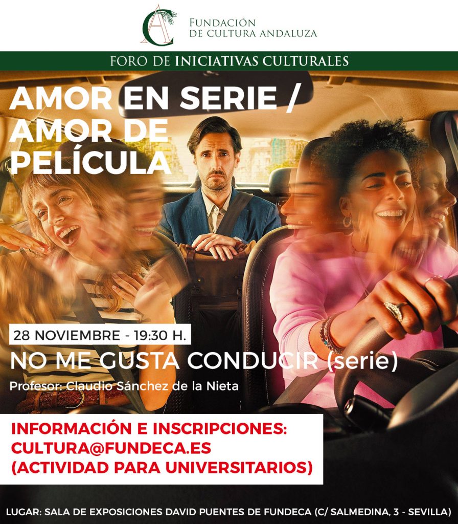 Este viernes 28 de noviembre continúa el seminario sobre el mundo audiovisual que organiza para este curso 2025/2026 la Fundación de Cultura Andaluza, «Amor en serie, amor de película». Como siempre, esta nueva sesión tendrá lugar en la Sala de Exposiciones David Puentes a partir de las 19:30 horas.